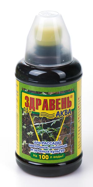 «ЗДРАВЕНЬ-АКВА для рассады цветочных, овощных и зеленых культур» — жидкое комплексное органоминеральное удобрение для корневой и некорневой подкормки рассады (овощных, цветочных и зеленых культур) в личных подсобных хозяйствах.